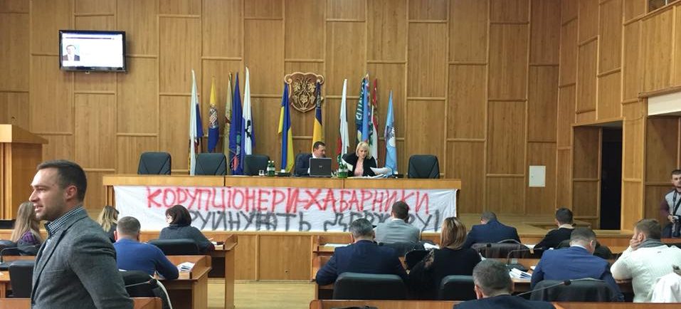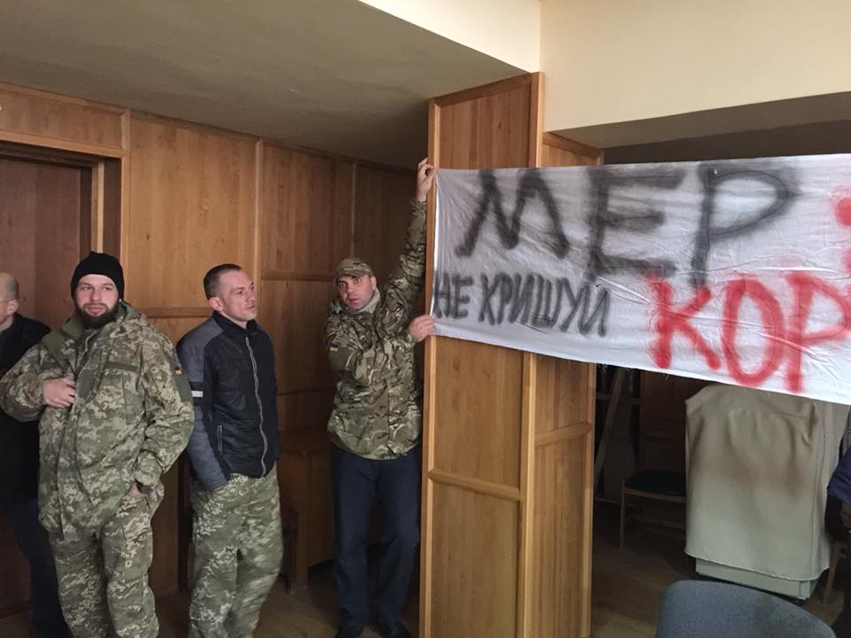 «Корупціонери-хабарники – руйнують державу», «Мер Андріїв, звільни, не кришуй корупціонера Цапа». З таким гучними гаслами чоловіки у військовій формі прийшли на сесію Ужгородської міської ради. Вони просять проголосувати за звільнення Іштвана Цапа з посади першого заступника міського голови, якого, нагадуємо, прокуратура звинувачує у корупції, пов’язану з виділенням землі.