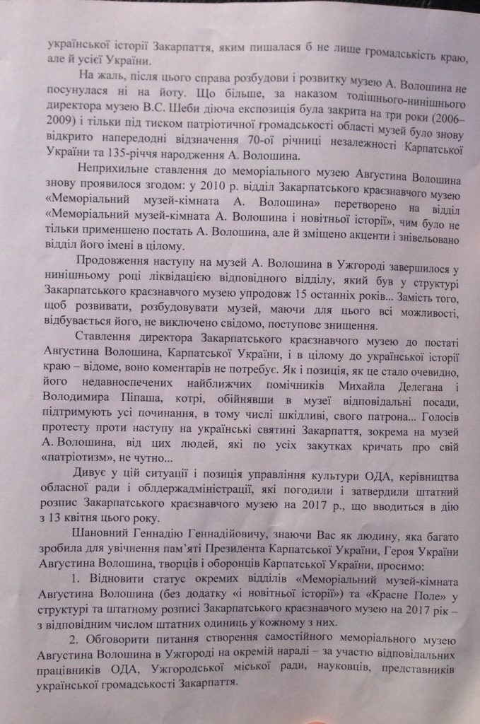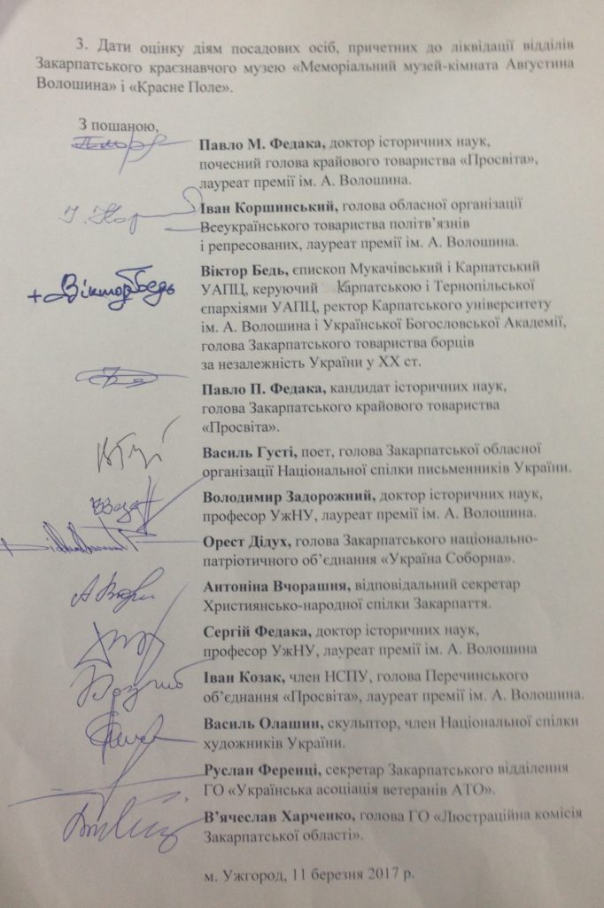 3. Дати оцінку діям посадових осіб, причетних до ліквідації відділів Закарпатського краєзнавчого музею «Меморіальний музей-кімната Авґустина Волошина» і «Красне Поле».
