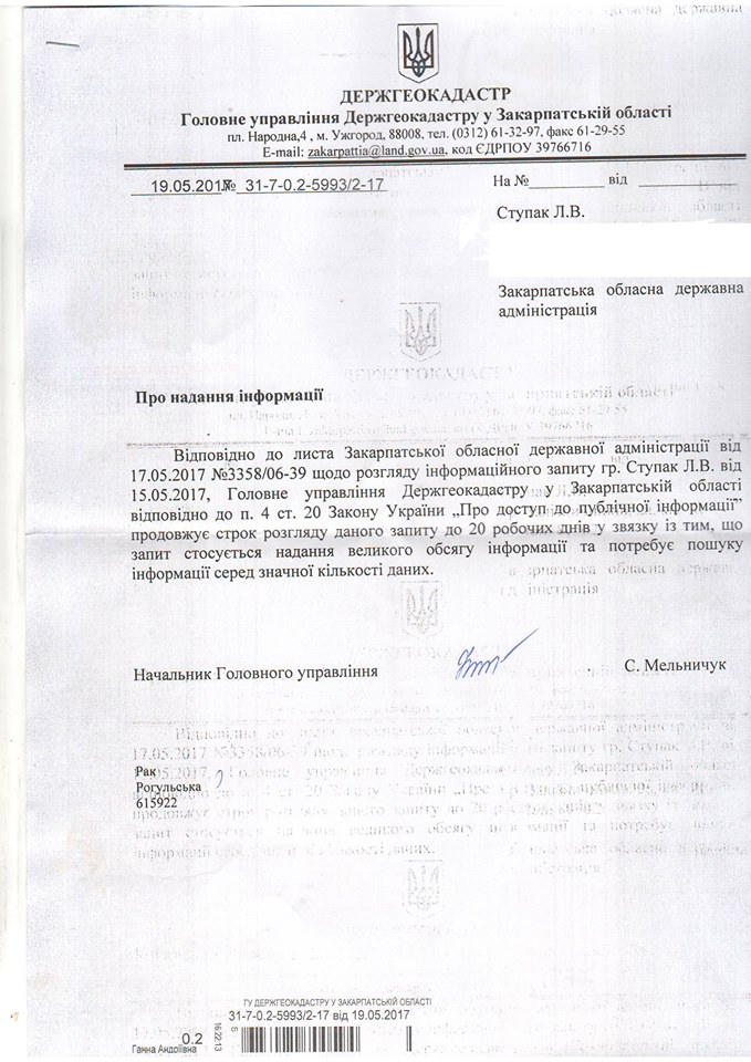 — Москаль переправив мій запит в Хустську райадміністрацію і Держгеокадстр.