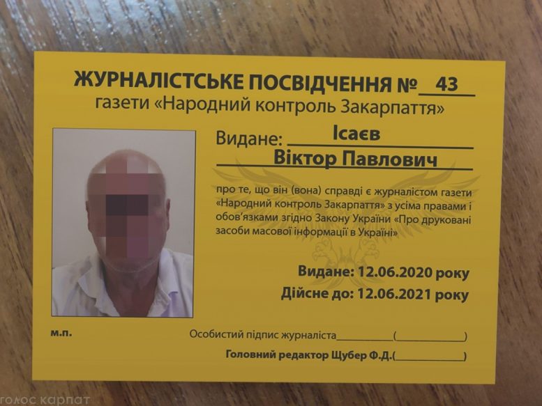 В розпал скандалів зі зникненням дихального апарату і смертю хворої Ференці, лікар Ісаєв стає членом ГО «Народний контроль Закарпаття» та отримує від цієї організації посвідчення журналіста газети «Народний контроль Закарпаття».