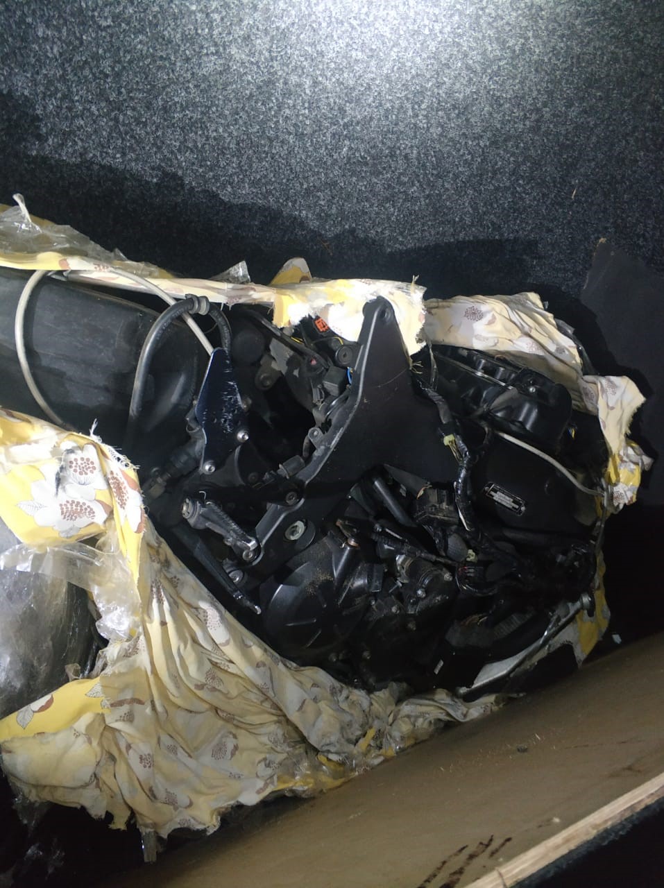 Як результат, під час перевірки мікроавтобуса у ньому було виявлено тайник. У подвійній перегородці від контролю приховали частини бензинового двигуна до моторної лодки та мопед «Kawasaki» у розібраному стані.
