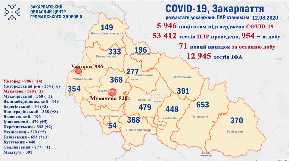 загалом, 5 946 закарпатцям встановлено діагноз COVID-19, із яких – 753 медики та 329 – діти;