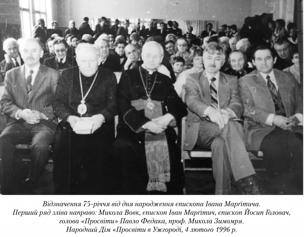 4 лютого 1996 р. у Народному Домі «Просвіти» в Ужгороді крайове товариство «Просвіта» разом з асоціацією «Світ культури» провело величавий вечір з нагоди 75-річчя від дня народження єпископа Івана Марґітича. Ювіляра тепло вітали голова крайового товариства «Просвіта» Павло Федака, голова асоціації «Світ культури» проф. Микола Зимомря, єпископ Йосип Головач, відповідальний секретар облорганізації Всеукраїнського товариства політв’язнів і репресованих Омелян Росул, голова облорганізації Союзу українок Оксана Ганич, голова Християнсько-народної спілки Закарпаття Віктор Бедь, заступник голови крайової «Просвіти» проф. Михайло Сюсько, професор Іван Мешко, голова облорганізації Спілки письменників України Василь Поп, голова правління АТ «Геліос» Федір Вовканич, о. Василь Данилаш, диригент хору ім. А.Волошина Ярослав Кирлик, доцент, заступник голови крайового товариства «Просвіта» Йосип Баглай, художник Антон Ковач, солістка хору «Кантус» Оксана Шолох, хор Ужгородського кафедрального собору та інші. Владика тепло подякував за привітання і запевнив, що й надалі буде самовіддано працювати на духовній, культурній і просвітницькій ниві рідної землі — для добра свого народу, в ім’я України.