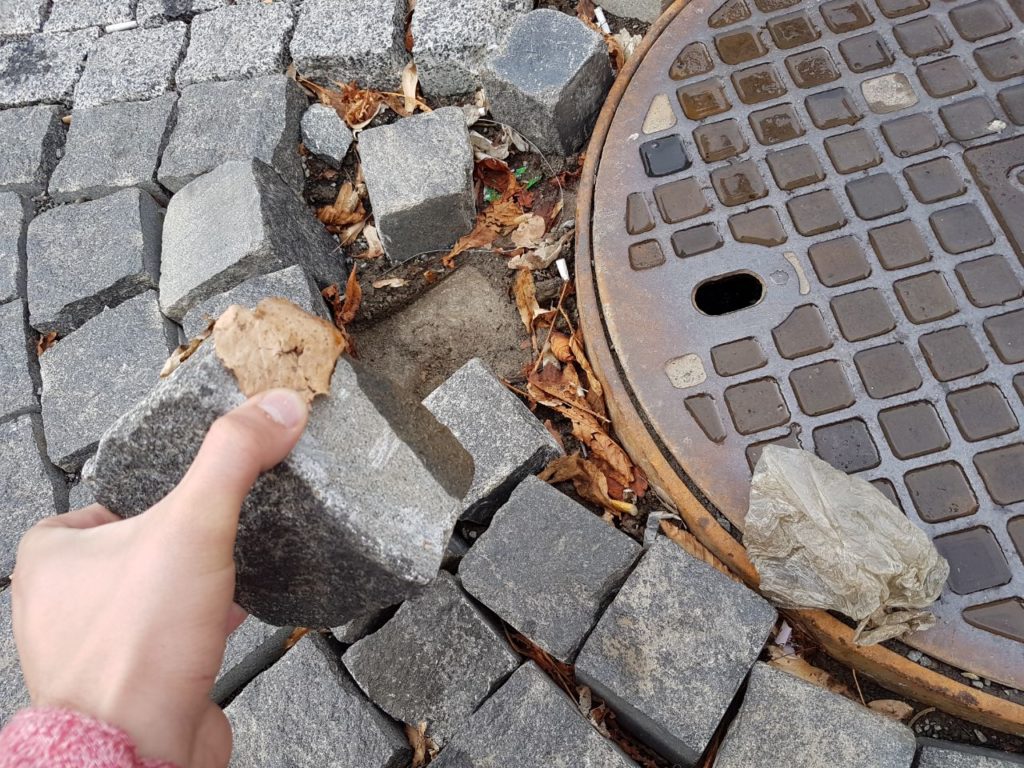 Журналісти здійснили інспекцію вулиці та відзняли фоторепортаж. Як виявилося, – Бруківку на вулиці Панаса Мирного в Ужгороді можна витягнути руками. І це не зважаючи на вартість капітального ремонту у понад 1.5 млн грн.