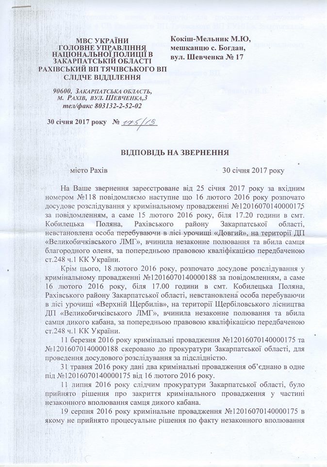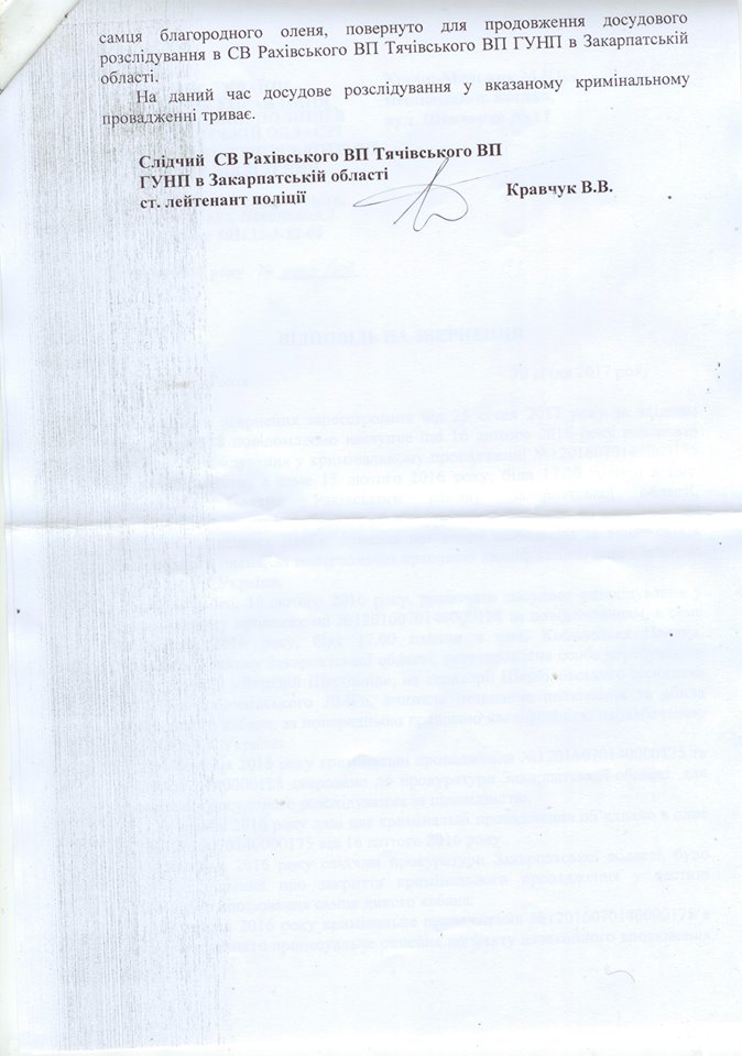 А кримінальну справу про незаконно впольованого оленя в ДП “Великобичківське ЛМГ” лісовою охороною прокуратура волокітить кабіненами вже рік, – зазначає Микола Кокіш-Мельник у повідомленні на адресу “Трибуни”.