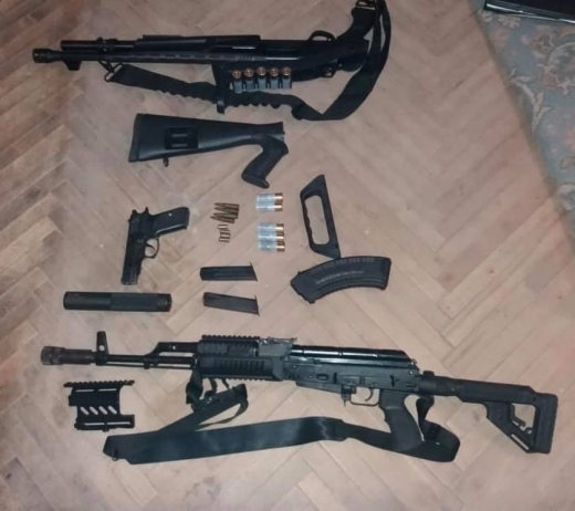 В ході обшуків поліцейські вилучили пістолети, мисливський карабін, рушницю, набої різного калібру, телескопічний кийок, балаклави, камуфляжний одяг, мобільні телефони, які чоловіки, ймовірно, використовували для перемовин, та автомобілі марок «Lexus», «Mercedes-Benz Gelandwagen», «BMW», «Toyota».