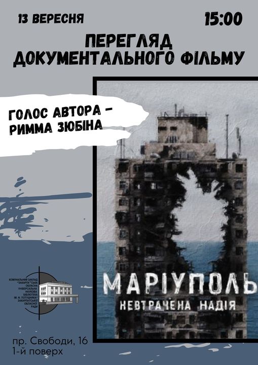 Закарпатська Обласна Універсальна Наукова Бібліотека ім.Ф.Потушняка запрошує на перегляд документального фільму “Маріуполь. Невтрачена надія”.