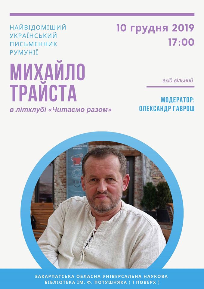 Поспілкуватися з цією цікавою людиною можна буде у вівторок, 10 грудня, о 17:00, в Закарпатській обласній універсальній науковій бібліотеці ім. Федора Потушняка.