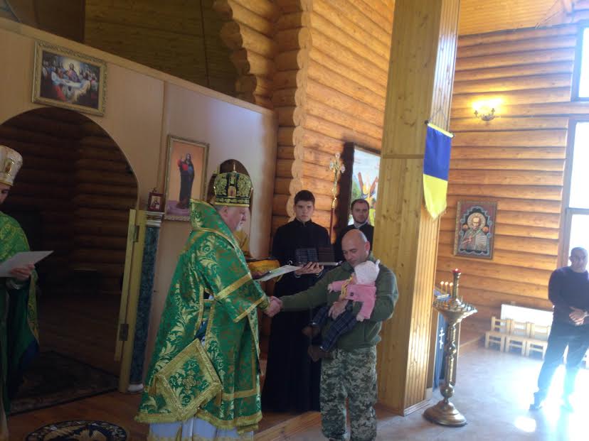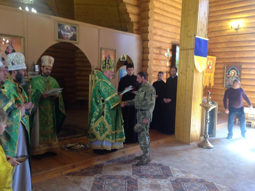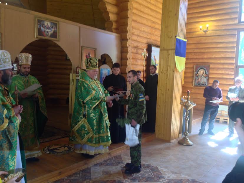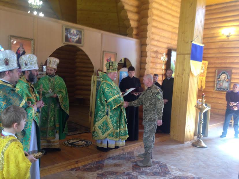 Відтак, з словом до присутніх також звернувся перший заступник Закарпатського обласного військового комісара, учасник АТО підполковник Микола Журавльов, який подякував Преосвященійшому єпископу Віктору за увагу та молитовну підтримку до військовослужбовців та їх сімей. Інструктор тактичної медицина Ерік Глеба вручив Миколі Журавльову подарунок від військових медиків Естонії.