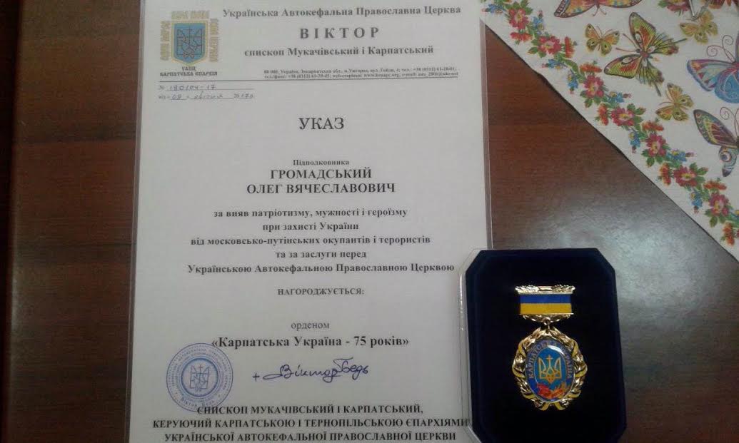підполковника Олег Вячеславович Громадський – орден «Карпатська Україна – 75 років»;