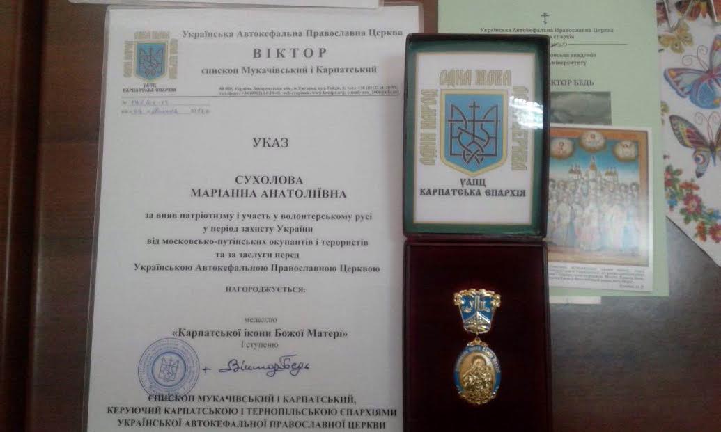 Маріанна Анатоліївна Сухолова – медаль «Карпатської ікони Божої Матері» І ступеню;