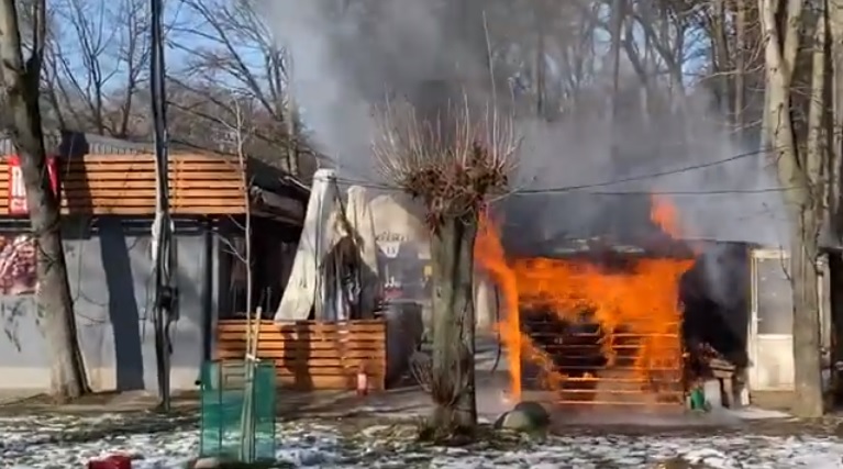 В Ужгороді, на території Боздоського парку горить одна зі споруд кафе “Ribs”. У середині приміщення є три газові балони. За словами працівників, один вже вибухнув.