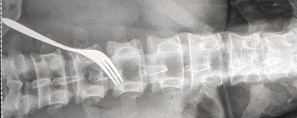 За словами медика, вилку пацієнт проковтнув 3-4 місяці тому: “Сталося це не гострим, а тупим кінцем. Це представник ромського населення. За 3-4 останні дні воно дуже спазмувало, подразнило слизову шлунку, тому вчора в нього були дуже різкі болі. Колеги були змушені брати його й оперувати. Забрали виделку і зашили стінку шлунку. У чоловіка порушена психіка”.
