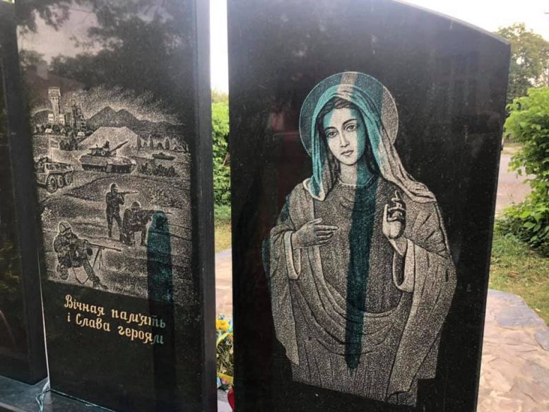 Нелюди облили зеленкою меморіал загиблим воїнам в російсько-українській війні на площі імені майора Віталія Постолакі в Ужгороді.
