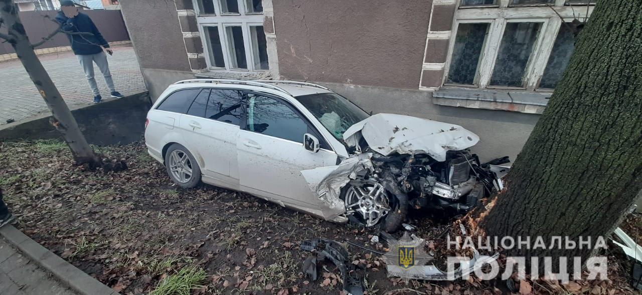 Від удару “Mercedes” винесло за межі проїзної частини, де автомобіль зіткнувся з деревом.