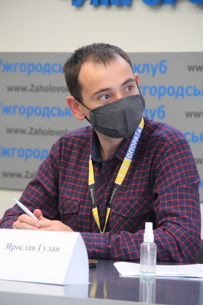«До 24 вересня на Закарпатті окремі осередки політичних партій провели свої конференції стосовно висунення кандидатів на місцеві вибори. Однак спостерігачам ОПОРИ вдалося потрапити не на всі заходи. Зокрема, на конференцію обласного осередку партії «Опозиційна платформа – За життя» спостерігача ОПОРИ не акредитували, мотивувавши це карантином, а у закладі, де анонсувалася конференція обласної організації партії «За майбутнє», спостерігачу ОПОРИ повідомили, що нічого не знають про проведення заходу. Закарпатський осередок партії «Пропозиція» анонсував свою конференцію у місті Дніпрі, відтак дістатися до заходу представнику ОПОРИ не виявилося можливості. Партія «Перемога Пальчевського» вказала в повідомленні про проведення конференції адресу житлового будинку. Спостерігач ОПОРИ прибув за вказаною адресою, однак, ймовірно, конференції там не було. Зрештою, ця політична сила не зареєструвала своїх кандидатів для участі на місцевих виборах. Окремі осередки провели свої збори у два етапи», – зазначив під час пресконференції координатор спостереження Громадянської мережі ОПОРА за виборами в Закарпатській області Ярослав Гулан.