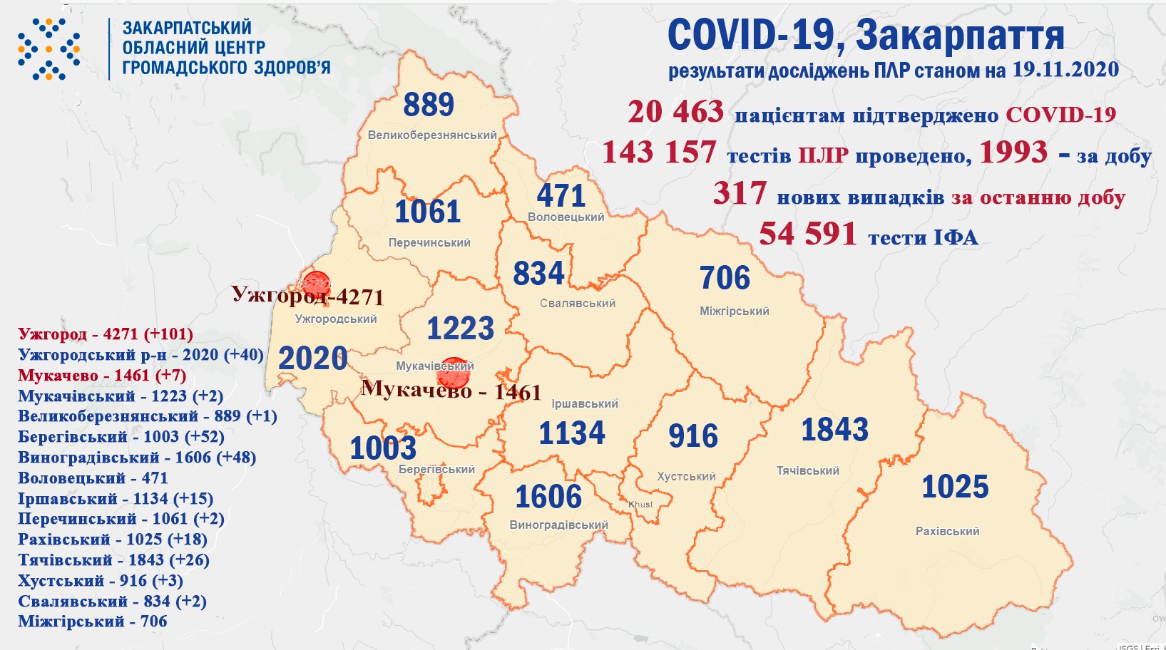 Загалом, 20 463 закарпатцям встановлено діагноз COVID-19, із яких 1 772 медики та 1046 – діти.