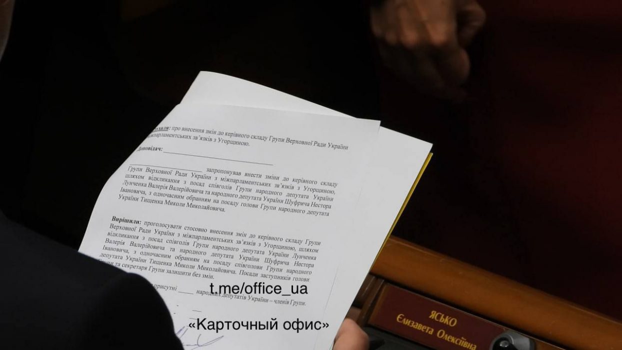 Народний депутат Микола Тищенко, який очолює закарпатський осередок партії “Слуга народу” відсторонив нардепів Валерія Лунченка та Нестора Шуфрича від керівництва Групи ВРУ з міжпарламентських зв’язків з Угорщиною. Про це свідчить протокол засідання групи.