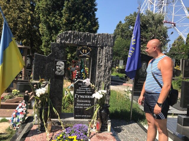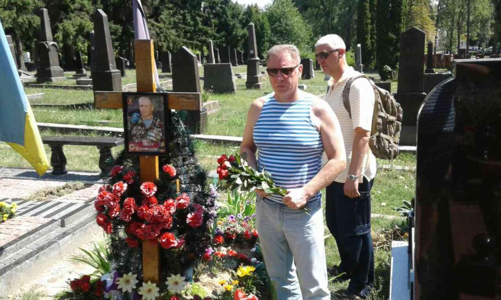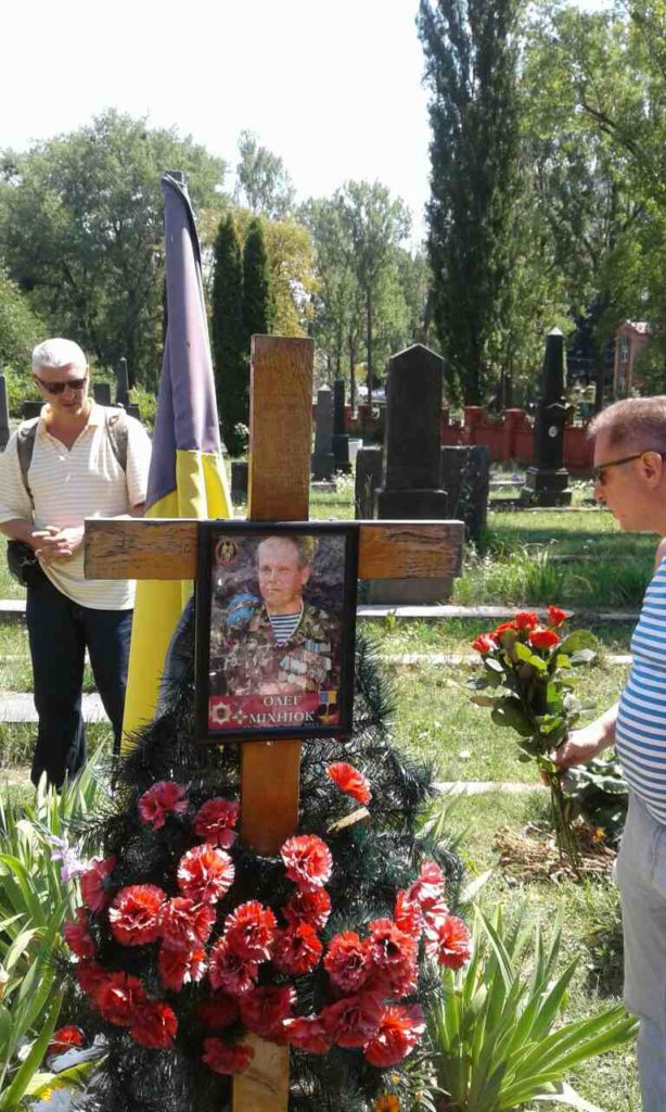 На могилі Героя України, сотника Восьмої «афганської» сотні Самооборони Майдану Олега Міхнюка, який