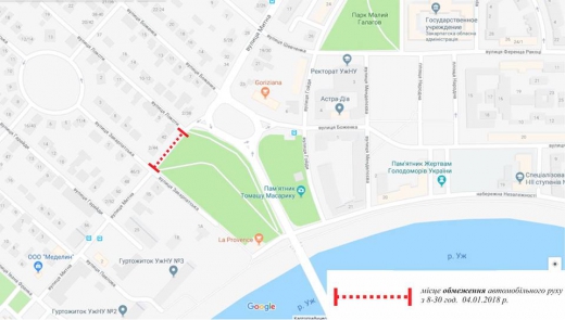 Завтра, 4 січня, в Ужгороді з 8.30 буде перекрито рух транспорту вулицею Митною (від вул. Закарпатської до вулиці Зореслава (Локоти), біля Ротарі-парку) у зв’язку зі зрізанням аварійно-небезпечних дерев.
