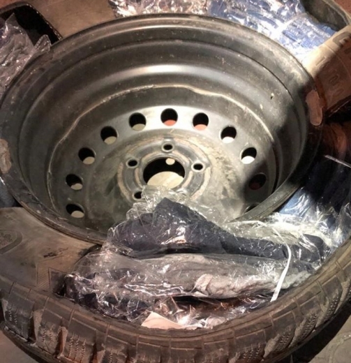 У запасному колесі мікроавтобуса закарпатські прикордонники виявили брендовий дитячий одяг