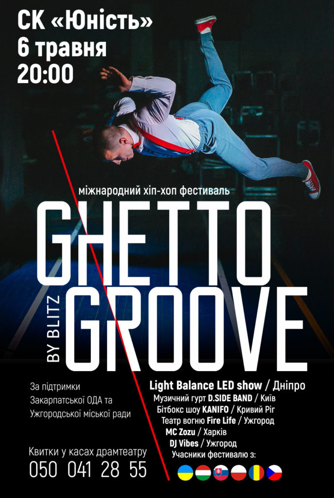 6-8 травня в Ужгороді відбудеться Міжнародний хіп-хоп фестиваль «Ghetto Groove». Ініціатором події виступає Студія сучасного танцю «Бліц» за підтримки Закарпатської ОДА та Ужгородської міської ради. Подія – одна з наймасштабніших в західній Україні. Такі танцювальні фести проходять в інших регіонах, але саме в західних областях України ужгородський хіп-хоп фестиваль став чи не єдиним і знаковим.