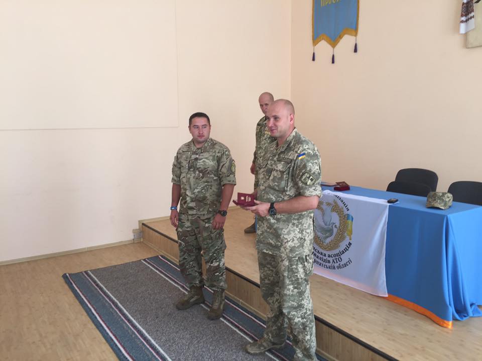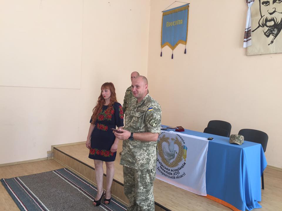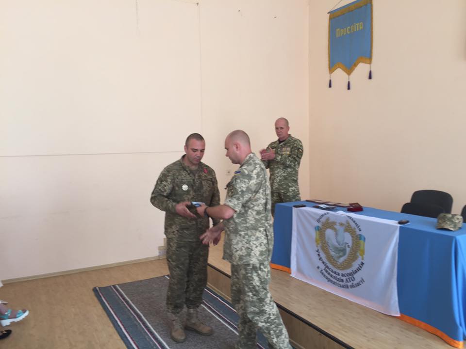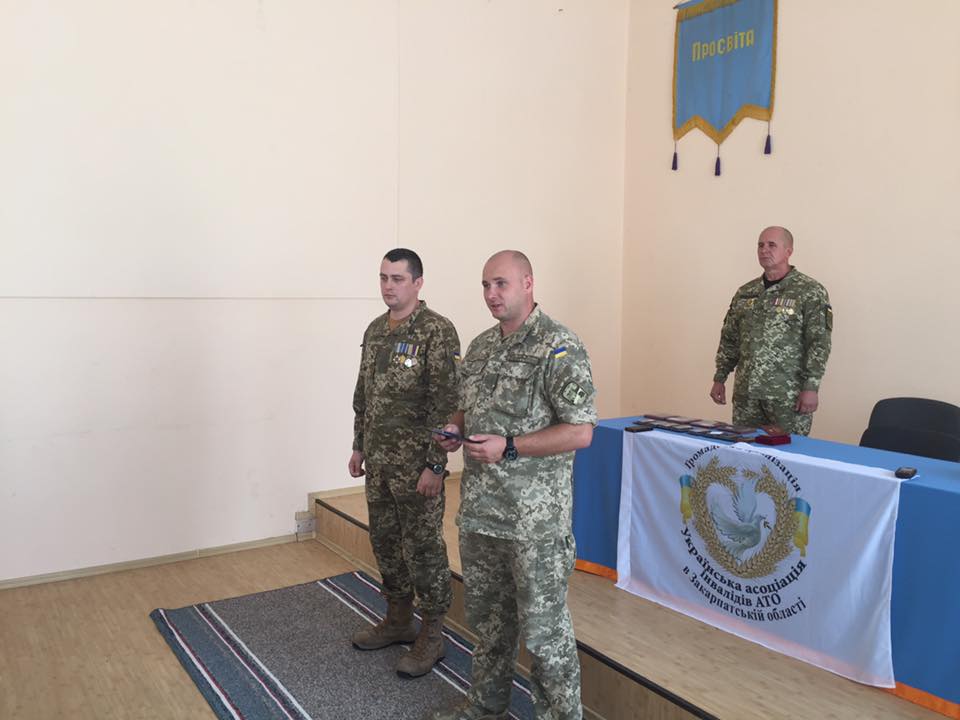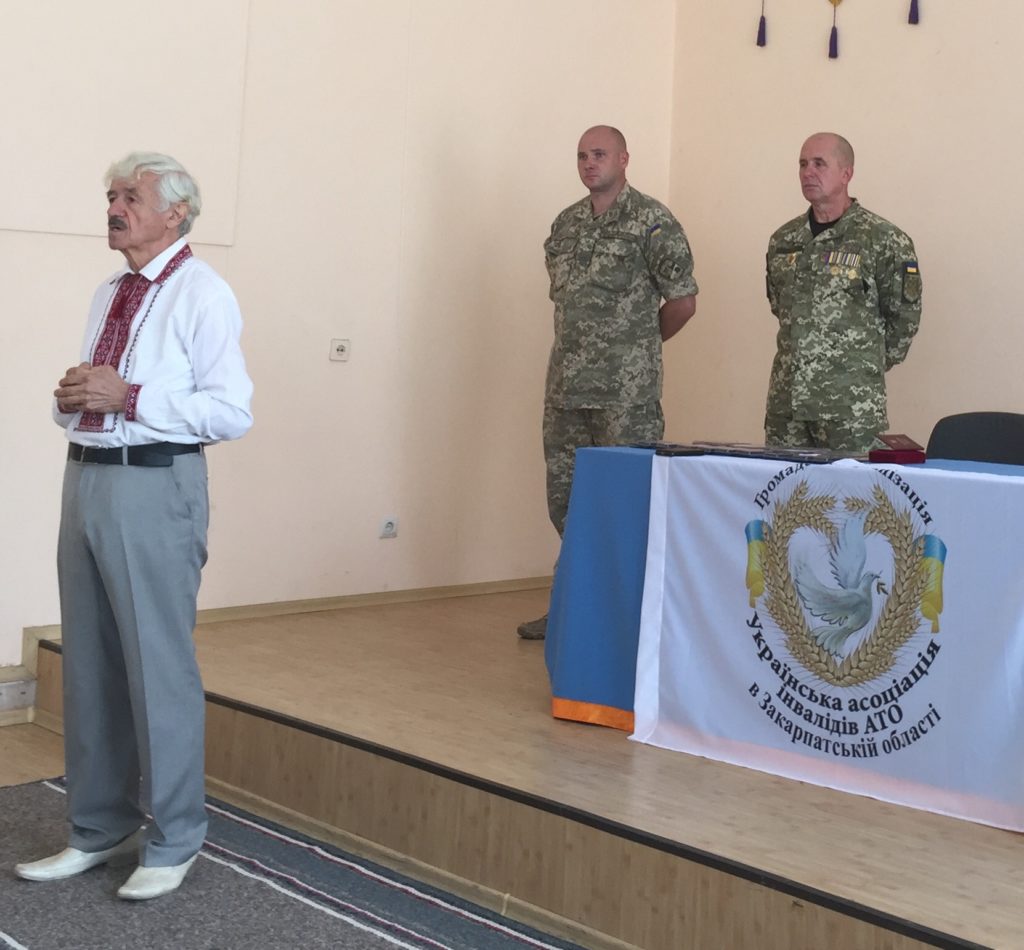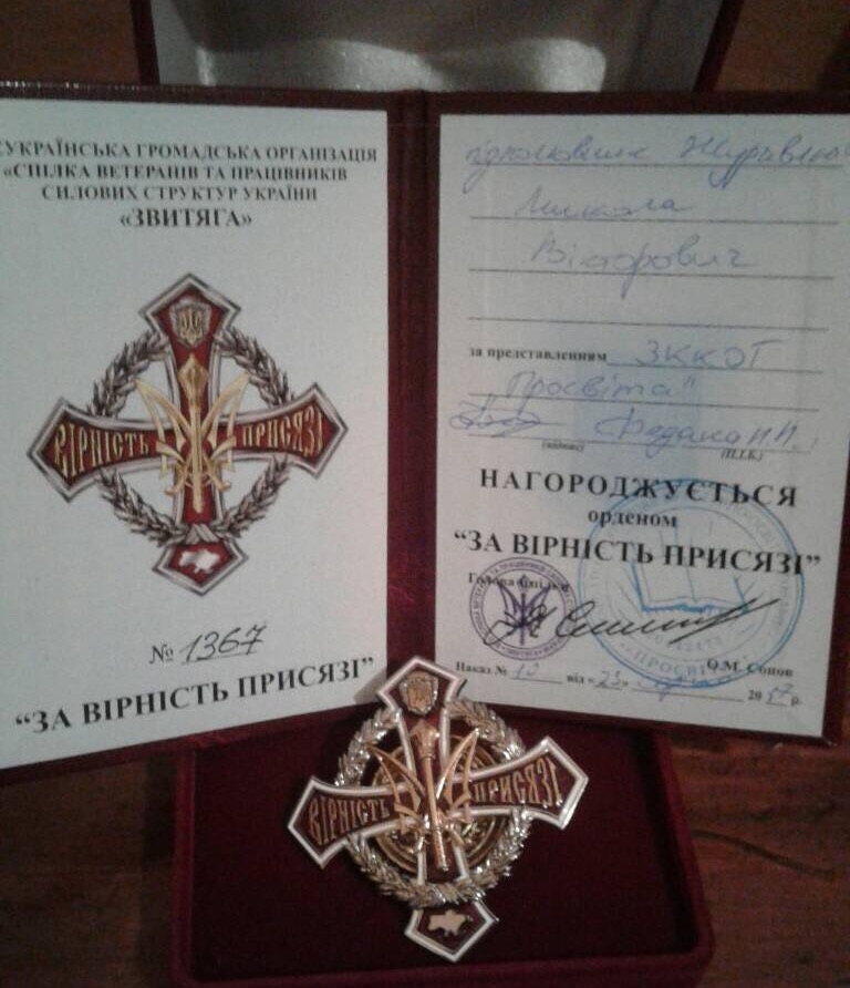 Голова крайової “Просвіти” Павло Федака вручив підполковнику Миколі Журавльову, який покидає Закарпаття, вищу нагороду – Орден “ЗА ВІРНІСТЬ ПРИСЯЗІ”.