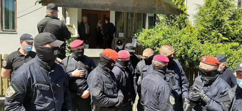 Поліція озброєна автоматичною зброєю контролює підходи до офісу Ужанського нацпарку.